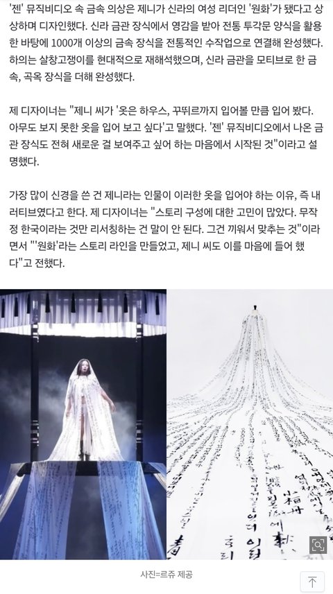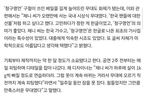 "하루 1kg씩 빠졌다"…제니, 무대 찢고 난리 난 '한국 옷'