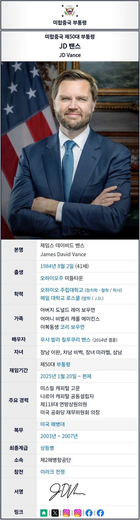 (사진1 설명) JD 밴스(JD Vance) 미합중국 제50대 부통령 <출처: NAVER 나무위키>