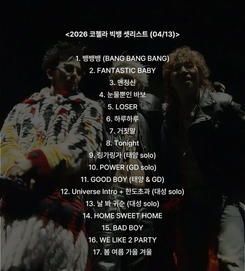 빅뱅 전세계 실트 1위 (코첼라)