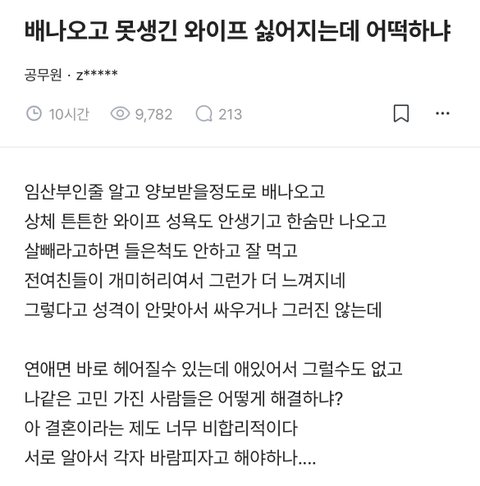 결혼못한 여자는 평생 이런데서 기혼녀 욕하고 남자 욕하는 글만 쓰다 죽지요.