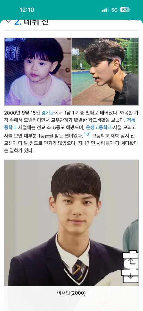이채민 과거 사진 보니까 진짜 놀람 애기 때부터 눈코입 다 완성형이고 고등학교 때도 이미 남주상이네