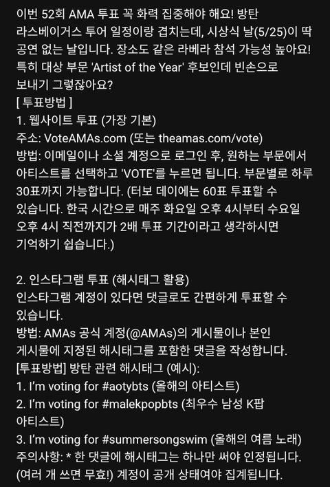 5/25 AMA 시상식 (방탄 공연 없음!!)