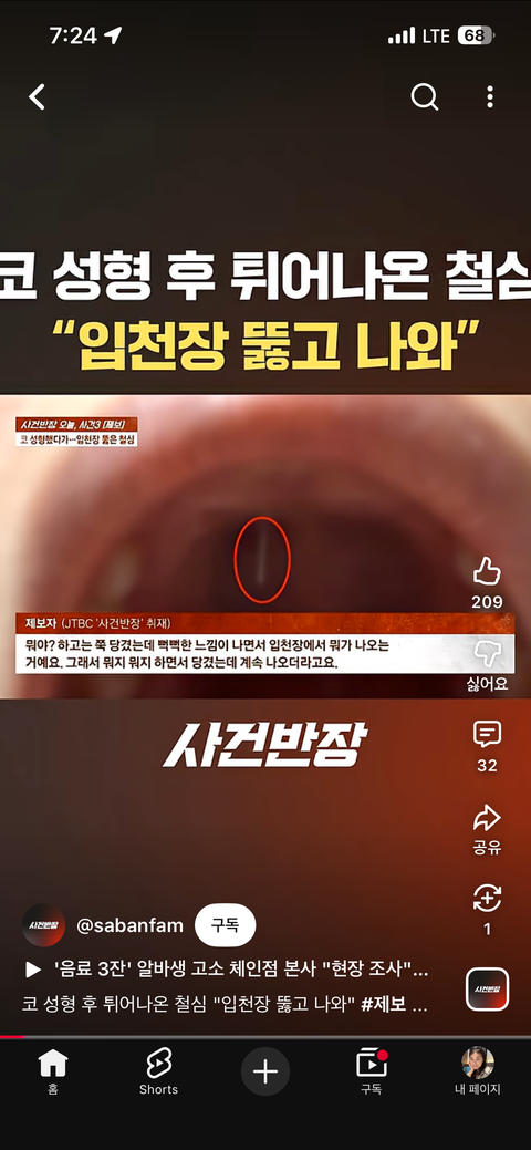 3-4년 전 코 수술 했고 그 사이 잘지내다 철심이 입천장으로 나왔어