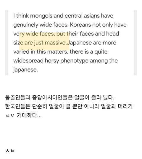 단언하건데 저런 평가 하는 유럽인은 일반적이지 않음. 지극히 동아시아적 마인드를 배경으로 한 글임. 내용만 영어로 썼다 뿐이지 저 글에 언급되지 않은 중국계 이거나 혹여 유럽인이라 해도 한국에 악의적 목적을가지고 쓴 글임. 해외살이 오래하고있지만 보통 외국인들은 머리크기 뿐 아니라 외모를 언급하고 평가하는 것 자체를 무례 혹은 미개하다고 여김.