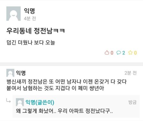 잘난 여자랑 결혼을 하고싶으면 상대를 인정하고 받아들이면 되는데 그 여자를 가스라이팅에 후려쳐서 지 발 밑에 두려는 하남자가 ‘한남’이기 때문임. ‘여자는 서른 넘으면’ 어쩌고저쩌고 하면 여자가 어맛! 20대에 결혼하고 애 낳아야지! 한다고 생각하는 저능아들ㅋㅋㅋㅋ 펜스룰 한다며 발작하더니 왜 안 만나줘 범죄는 줄어들지를 않음ㅠ