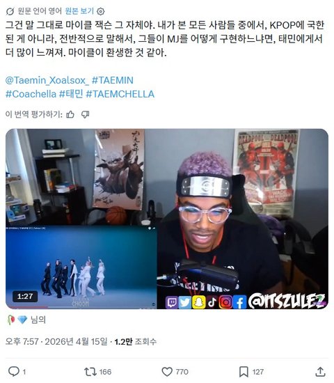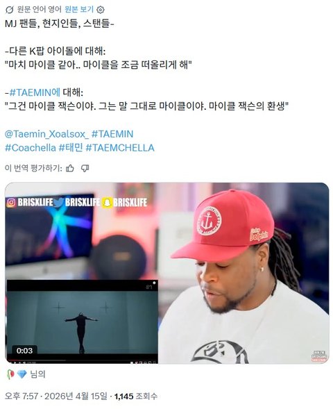 코첼라 이후 해외 유튜버들 사이에서 떡상중인 샤이니 태민.JPG