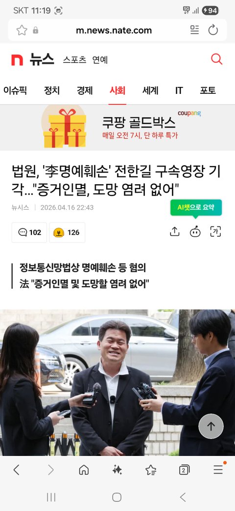 내 말데로 법원은 증거인멸,도주우려없다판단