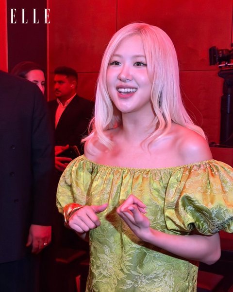 로제 장점이 슬림하고 탄탄한 직각 어깨랑 허리 라인인데, 저 뚱뚱한 검정 리본이 시선을 다 뺏어버림. 리본 위치도 조카 애매해서 비율 다 깍아먹고... 코디는 이게 최선이었냐? 걍 깔끔하게 가는 게 오만 배는 나았을 듯.