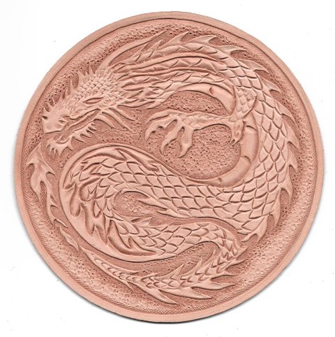 베지터블 내추럴 가죽에 용 디자인을 카빙(가죽 카빙)하였습니다.(마디샤)