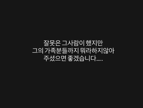 피해자 본인이 직접 올리신 스토리인데 지수 오빠 잘못이지 가족들 욕은 원치 않는다고 밝히신거 보면 지수가 찾아간게 아니라 걍 지수 오빠가 자기 회사 사람들이랑 찾아간거지. 그리고 지수는 이미 블리수에서 오빠 대표직 내렸는데 더이상 지수랑 무슨 상관이야 사실무근 고소했다는것도 알고보니 지수가 고소한것도 아님 ㅋㅋ 지수 오빠가 고소한거지