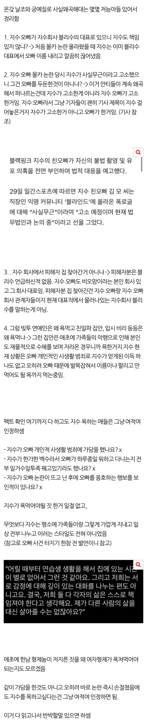정리글이니까 봐봐. 무작정 지수 욕하려는 애들 다 이거나 읽고 꺼지고 지수 오빠는 법적 조치를 받든 벌 제대로 받고