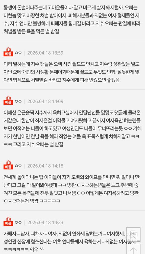 나연어머니가지고 나연 그렇게 욕하더니 지수오빠 논란터지니까 연좌제하지말자네 ㅋㅋ;