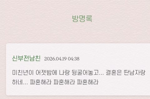 근데 오늘 새벽4시에 이런 방명록이 쓰여져 있었습니다