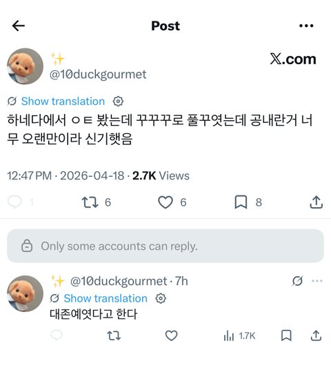 님아 글삭 하지 그러냐 저분이 본거는 윈터가 아니라 남돌 그룹 앤팀이라고 그분들 보셨던거임 정정 하셨는데 ㅋㅋ