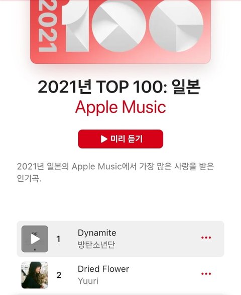 2021년 애플재팬 연간1위곡이 다너마임
