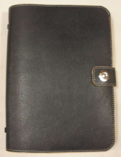 진 네이비 컬러 물결 무늬 엠보싱 천연 가죽으로 제작한 바인더형 다이어리입니다.(마디샤)