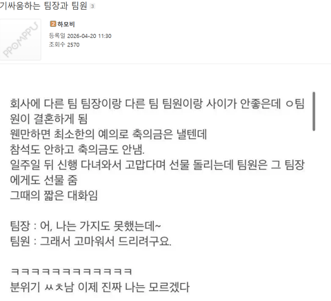 팀원이 이긴 걸 떠나 인사평가 괜찮나 싶네요 ㅋㅋ..