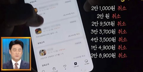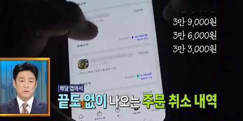 배달앱 3개 중 하나만 사용 정지상태였다고 함