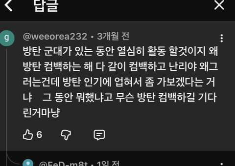 아형 엑방원특집 영상인데 저딴 댓글 달고있어.. 진짜 뭔 생각인지도 모르겠고 저런 댓글에 6명이나 좋아요 누른게 어이없어 진짜