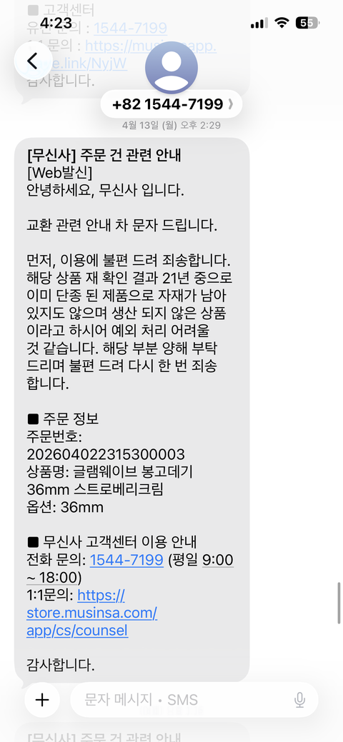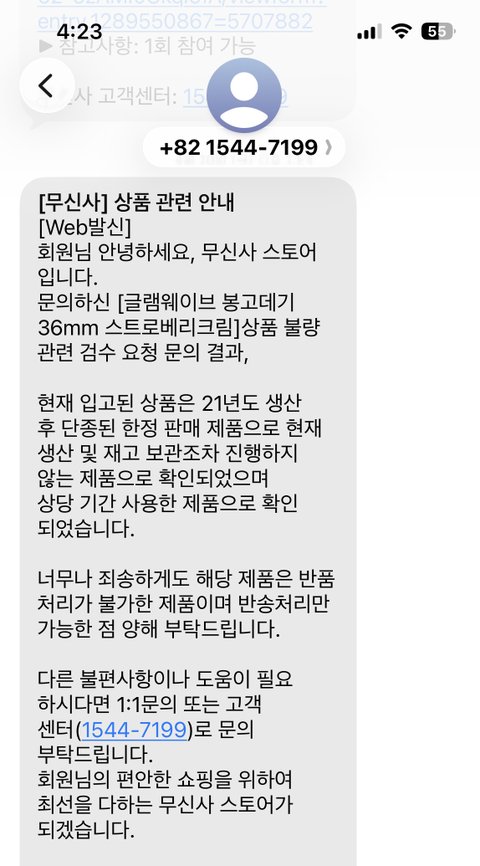몇 차례 문의 끝에 결론은 무신사와 보다나측은 내가 받은 제품이 이미 21년도에 단종된 제품이라서 생산라인도 다르고 재고도 없으니 출고될 리가 없으므로 반품 및 교환이 안된다는 입장임