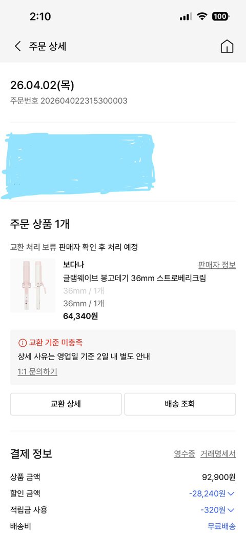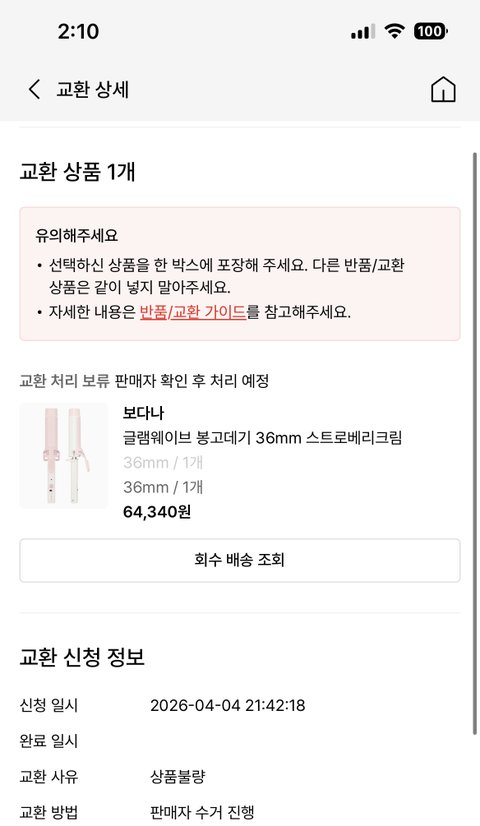 2026년 4월 4일 수령 후 바로 교환신청함
