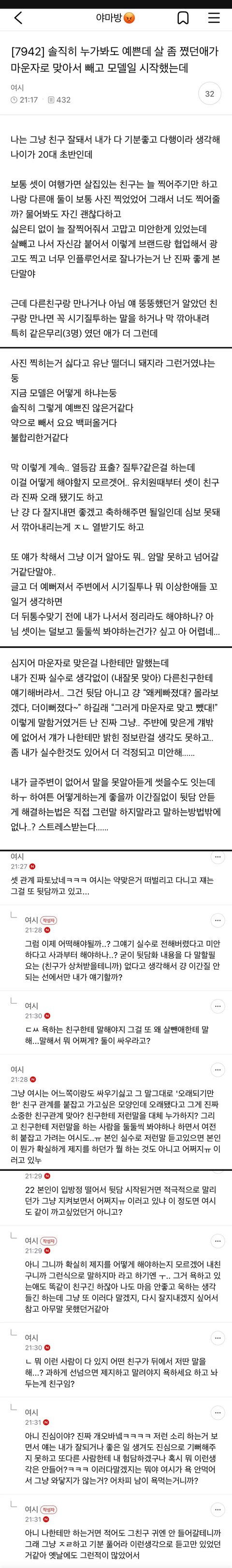 마운자로 맞은 친구가 저 둘 손절해야할듯