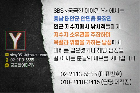 SBS에서는 태안 낚시객들에게 위협을 가하는 남성의 제보를 기다립니다.