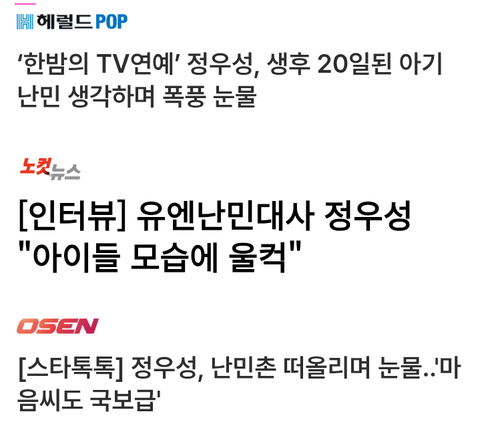 난민 아기 생각나서 폭풍 눈물 흘리는 정우성