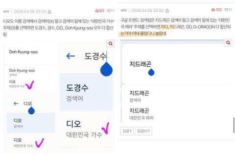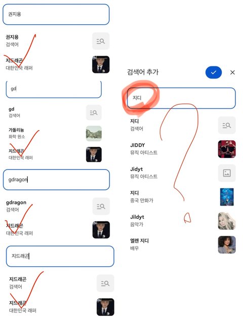 근데 제대로 찾아보니 저건 검색어중 [지디]가 누락된 버전임
