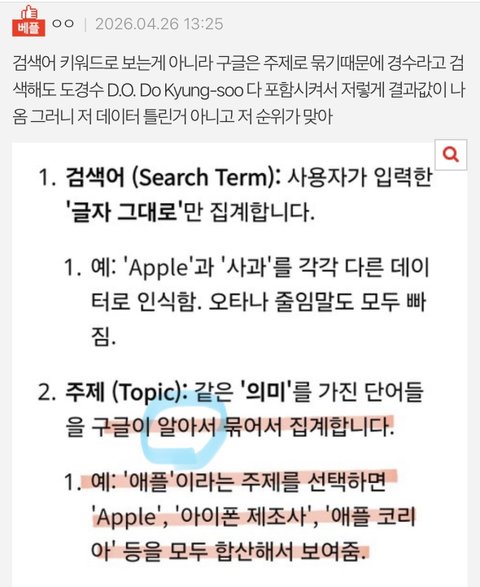 검색어(지디)는 아예 제외된 수치로도 그랬던거임