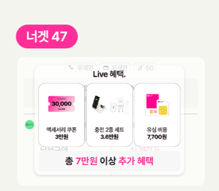 추가로 라이브에서 유심비, 충전세트, 악세사리 쿠폰까지 받을 수 있으니