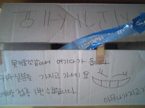 박스 위엔 '못키울것같아서 여기다가 둡니다. 키우실 분을 가지고 가세요.