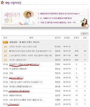 들어가서 패떳 시청자 의견 함을 들어갔는대....
