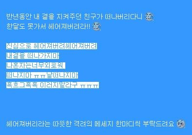 헤어져버리라는 따뜻한 격려의 메세지 한마디씩 부탁드려요 ![]()