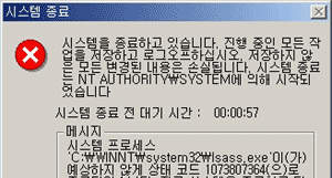 시작->실행->shutdown -a하시면 재부팅을 막을수는있습니다.