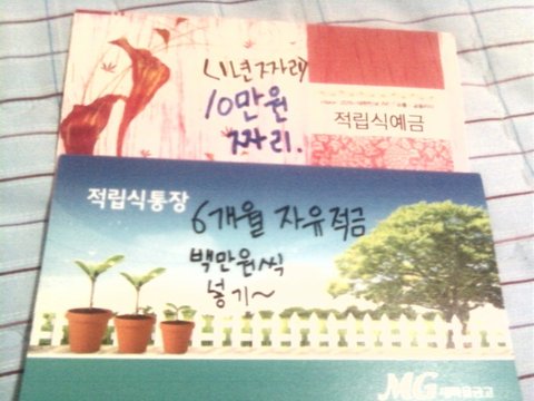 그래서 2주전에 잠깐일쉬고 어쩔이없이 또 적금통장 하나깻습니다.
