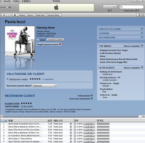 다음은 파올라의 싱글앨범에 수록된 곡들을 구입할 수 있는 i-Tunes 사이트의 정보입니다.
