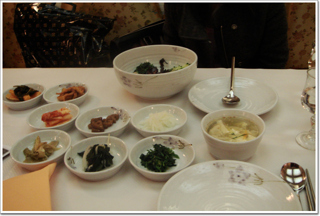 '귀빈': 비빔밥 점심메뉴하고 돼지고기볶음정식이던가 시켰습니다. 먹느라 바빠서 사진 한장밖에 안찍음. -_-;;; 이곳도 아주머니 엄청 친절하시고 모든맛이 깔끔하고 정갈합니다. 사진에 보이는것은 반대편에는 비빔밥이고 이쪽편에는 만두국 작은거네요.