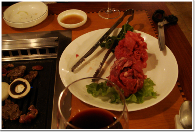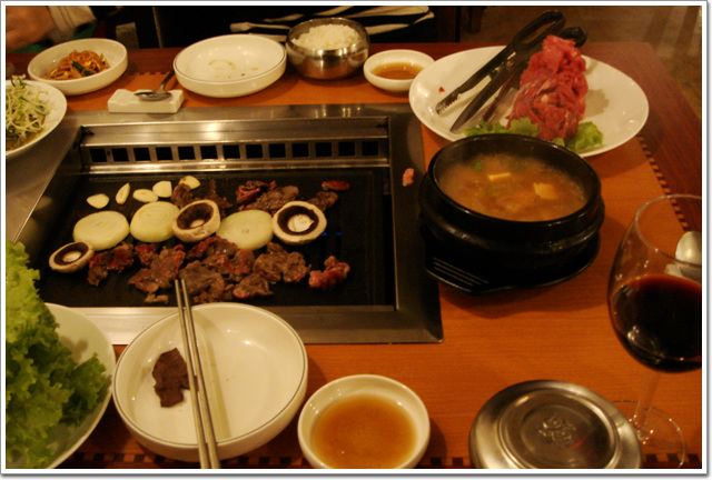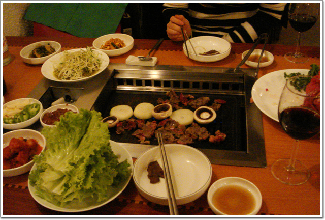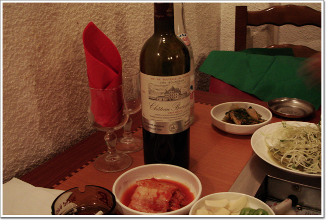 암소한마리는 38유로던가 하고.. 그게 2인분 가격이었습니다. 고기+밥+반찬+된장찌게 이구요. 양푸짐해요. 와인도 30유로대였나 그랬습니다. 그리고 물하나 시키고.. 서비스로 아저씨가 다방커피도 해주시고 디저트도 하나 먹었는데 아이스크림안에 마시멜로가 들어가있는 그런거 먹었습니다. 70얼마 나왔었는데 80에 맞춰서 계산해달라고 했구요. 나중에 돌아와서 생각하니 팁이 너무 적지 않았나 하는 아쉬움이 있더라구요. >_<;