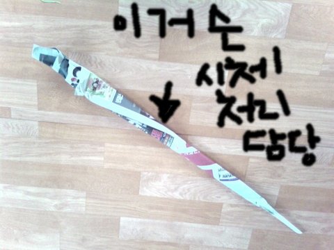 그래서 신문지가 또 마침 보이길레 고걸로 좀 길쭉하게 맹글어서 둘러 싸고