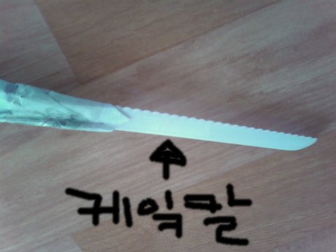 뭔가 없어보여서 마침 또 눈에 띄던 일회용 케잌칼 꽂고..