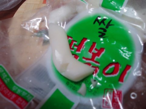 그래서 떡볶이를 먹고 몇시간후 라면을 끓일려고 떡볶이를 꺼내보니 떡속에 검은색을 띄는 이물질이 보이더군요 그래서 가위로 잘라보았습니다. 뭔가 싶어서요 근데 알수없는 딱딱한 벌레등껍질같기도하고 플라스틱같은것같기도하고 그런이물질이 끼여서 바로 그회사에 전화했습니다.
