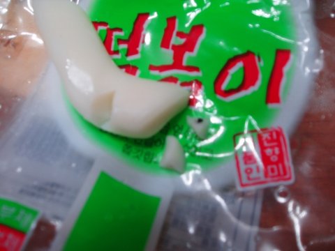 그래서 떡볶이를 먹고 몇시간후 라면을 끓일려고 떡볶이를 꺼내보니 떡속에 검은색을 띄는 이물질이 보이더군요 그래서 가위로 잘라보았습니다. 뭔가 싶어서요 근데 알수없는 딱딱한 벌레등껍질같기도하고 플라스틱같은것같기도하고 그런이물질이 끼여서 바로 그회사에 전화했습니다.