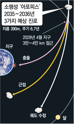 ‘지름 390m의 소행성 아포피스가 2035년이나 2036년 과연 지구와 충돌할까. 또 아포피스 충돌을 막을 대책은 있는가.’