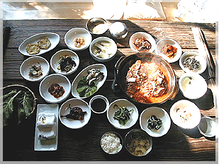 메인요리인 찜요리에 밑반찬은 부침개 고사리나물 버섯나물 깍두기 게장 동치미 고추장아찌 멸치조림 마늘장아찌 생굴 젓갈류 등 10여가지가 오른다. 구색맞추기, 가짓수 늘리기가 아니고 어느 음식이나 맛깔스러워서 고루고루 젓가락이 간다.