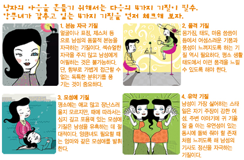 지루함은 데이트의 적! 일부러 하루 종일 휴대폰을 받지 않는다든지, 약속 시간에 나타나지 않는 등 예측 불가능한 행동을 해서 잠시도 눈을 뗄 수 없고, 안심할 수 없는 여자라는 생각이 들도록 한다.