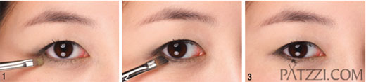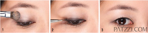 MUST!눈 위쪽에 특별한 스모키 테크닉을 쓰지 않는 대신 약간 번진 듯한 아이라인으로 그리되, 그러데이션된 폭은 역시 쌍꺼풀 라인을 넘지 않 도록 할 것.