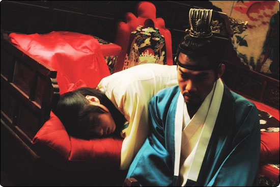 그렇게 여러번 머리를 찧던 연산, 참을 수 없는 감정이 복받쳐 오르는 듯 갑자기 공길의 입술에 입을 맞춘다.