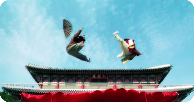 공길과 장생, 줄을 힘껏 튕기더니 높이 몸을 띄운다.