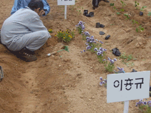 아름다운 꽃을 심고 계신 이흥규 할아버님의 모습.